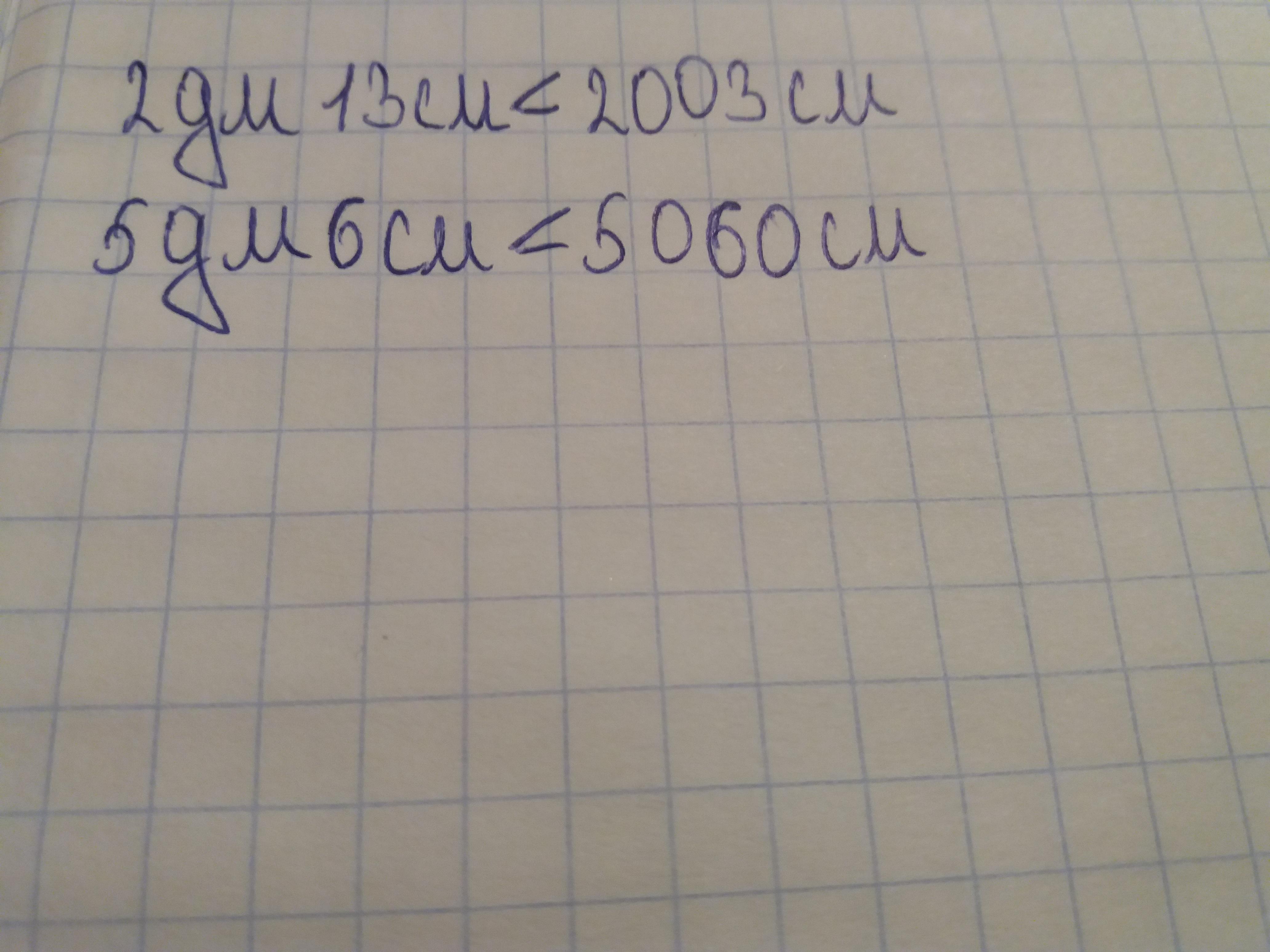 Ответ: 2 дм 13 см <2003 см. 5 дм 6 см < 5060 см.