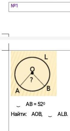 Центральный угол равен градусной мере дуги, на которую он опирается, следовательно АОВ = 52°. Вся окружность составляет 360°, значит дуга ALB = вся дуга - дуга АВ = 360°-52° = 308°