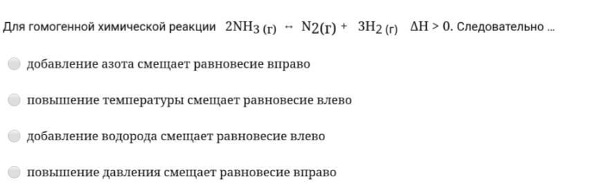 добавление водорода смещает влево