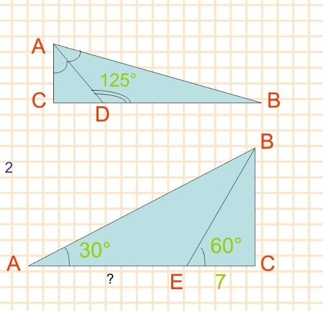 А тот второй угол А который лежит в другом треугольнике будет 125-62,5 = 62,5 градусов, потому А и Д в общем будут равны углы