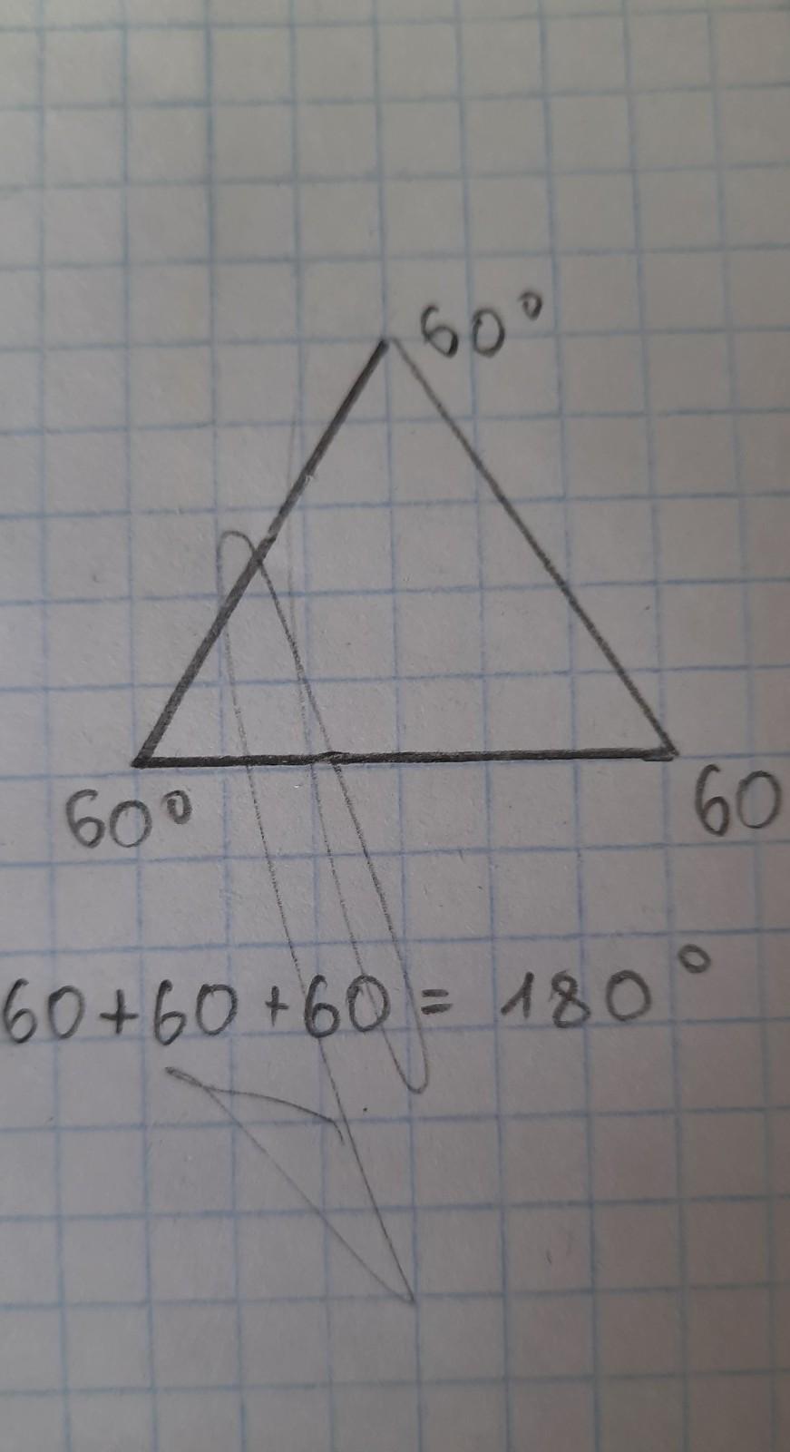 можете начертить треугольник по клеточкам в котором градусы при их сложении будет 180"
