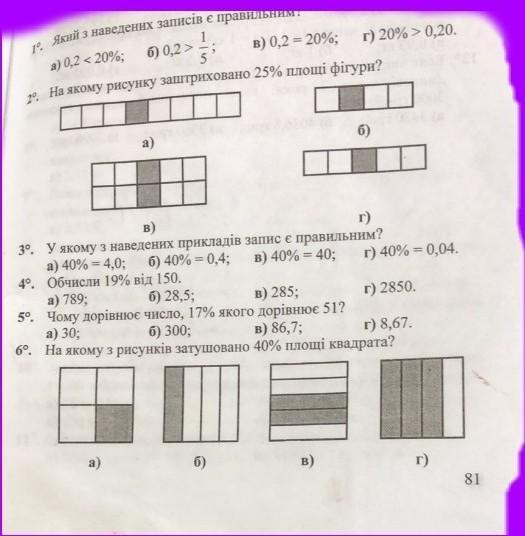 #2 25% от 100% это 1 /4 (дробью) рисунок б)#6 40% от 100% это 2/5 (дробью) рисунок в