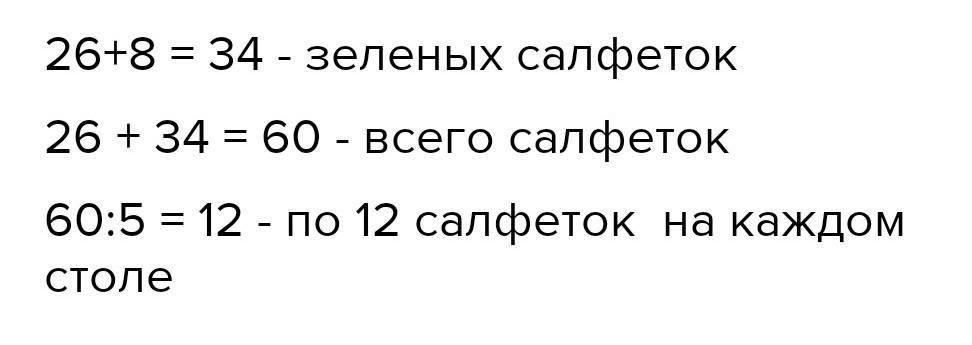 1) 26+8=34 (салфетки)-составляют зелёные.