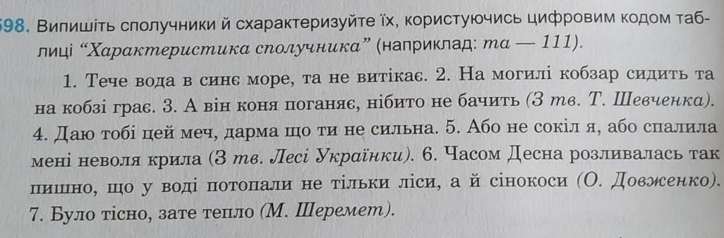Випишіть сполучники й схарактеризуйте їх,користуючись цифровим кодом таблиці"Характеристика сполучника"