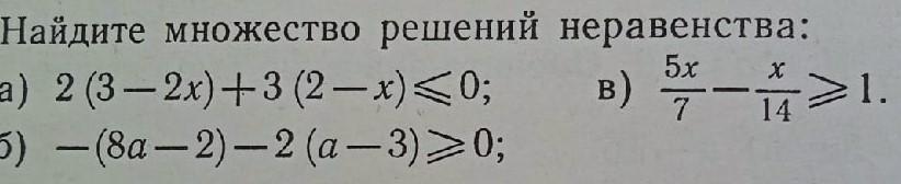 a) 2(3-2x)+3(2-x)<0 в) 5х/7-x/14>1