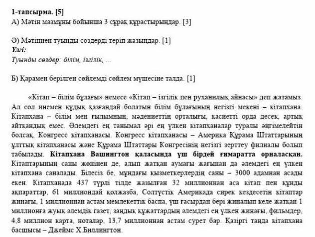 А) Мәтін мазмұны бойынша 3 сұрақ құрастырыңдар. [3]