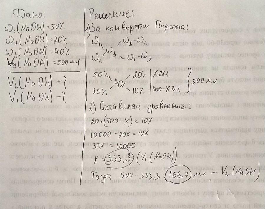 Сколько миллилитров 50%- и 20%-ного растворов едкого натрия потребуется 500 мл 40%-ного раствора