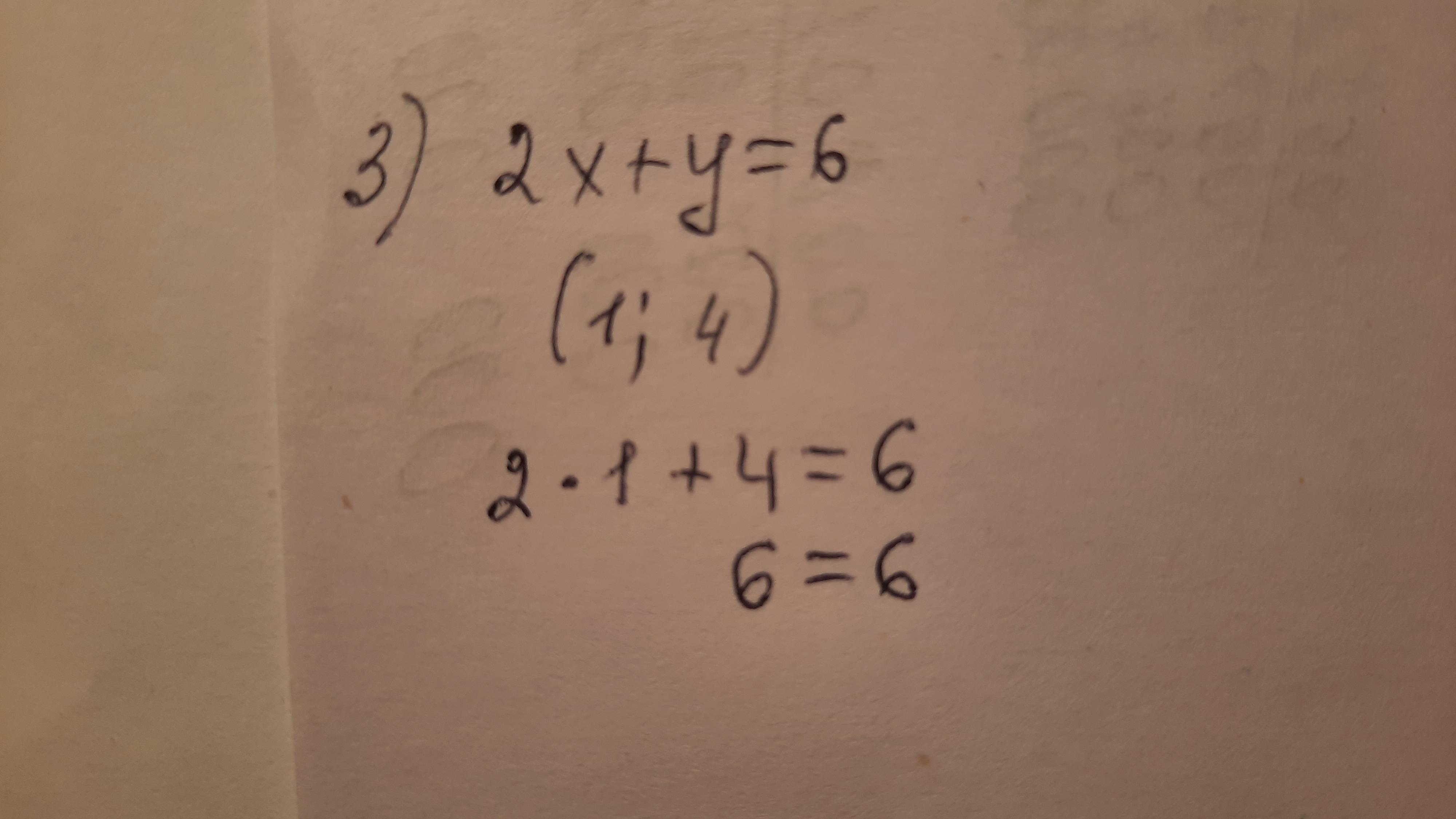 3. Яка з наведених пар чисел не є розв'язком рiвняння 2x+y=6? A) (1;4); Б) (-3;0); B) (-4;14); Г) (4;-2).