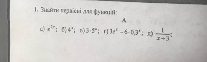 в) F(x) = ( 3* 5^x )/Ln5 + C ; г) F(x) = 3e^x - ( 6*0,3^x )/Ln0,3 + C ;