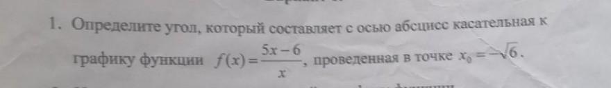 можу підказати, просто лінь розписувати похідну. Рівняння дотичної в точці х0: f'(x0)*(x-x0). І в цьому рівнянні f'(x0) це буде тангенс кута нахилу дотичної