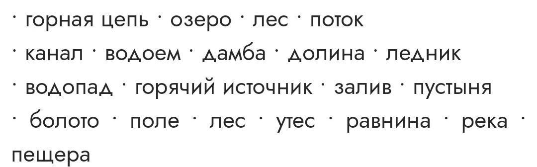 На нем была горная цепь. Не подалеку в лесу было большое озеро. Лес был большой. Вчера был поток воды. Мама переключила канал. Там далеко был глубокий водоем. Широкая долина виднелась сзади дерева. Девочка увидела ледник. Водопад льется бесконечно. Не было там горячего источника.