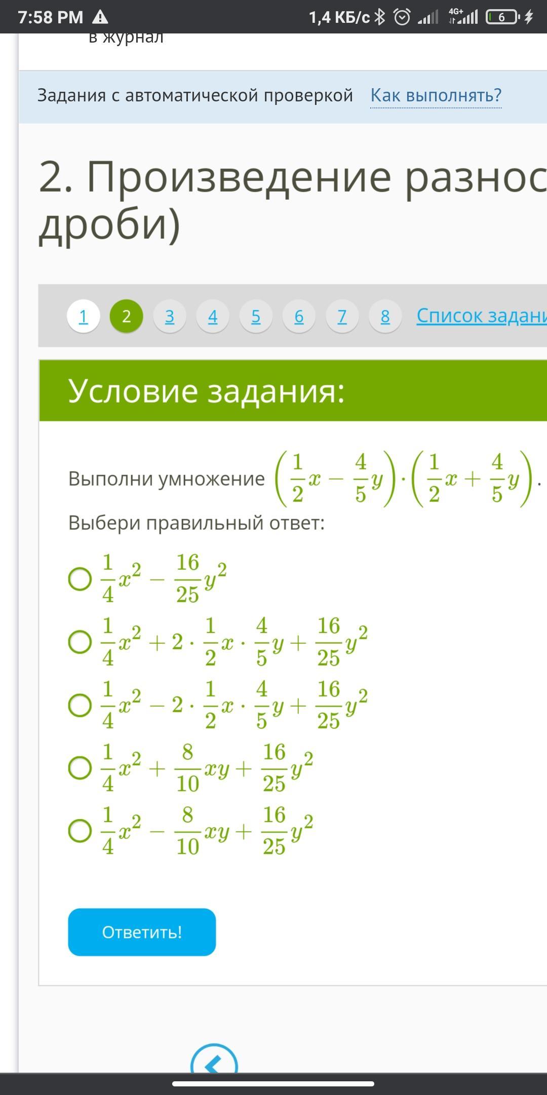¼х²-16/25у² под 1)