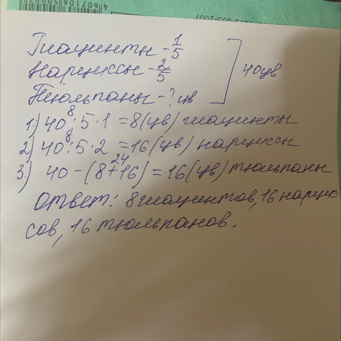 2) 40 * 2/5 = 80/5 = 16 (цв) - нарциссов