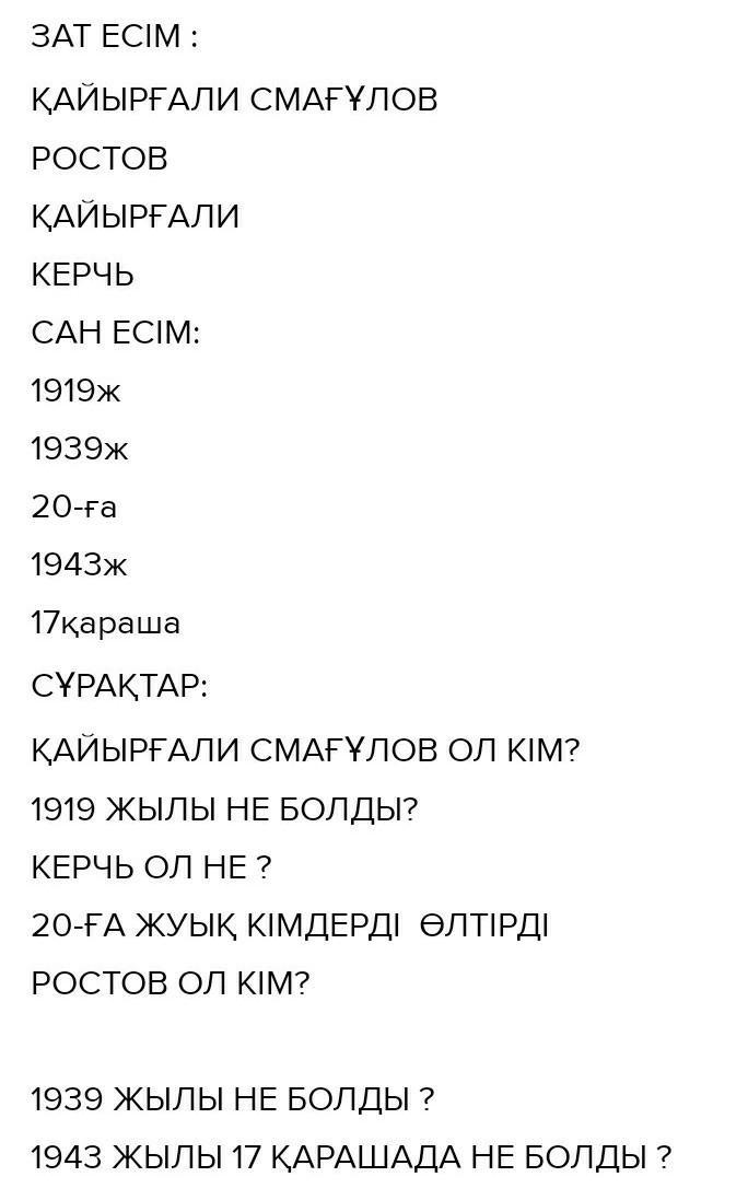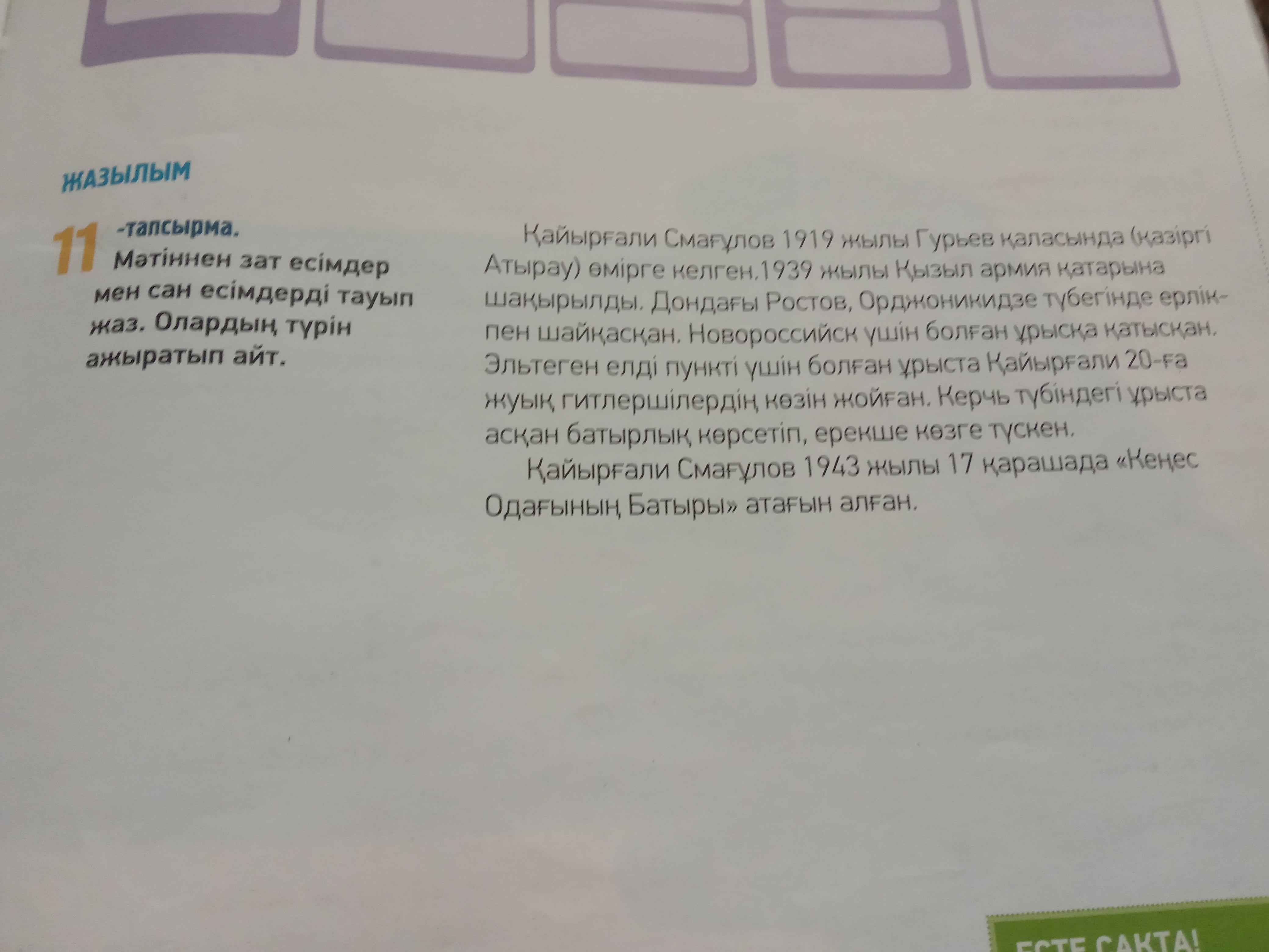 Мәтінен зат есімдер мен сан есемдерді тауып жаз. олардыңтүрін ажыратып айт.