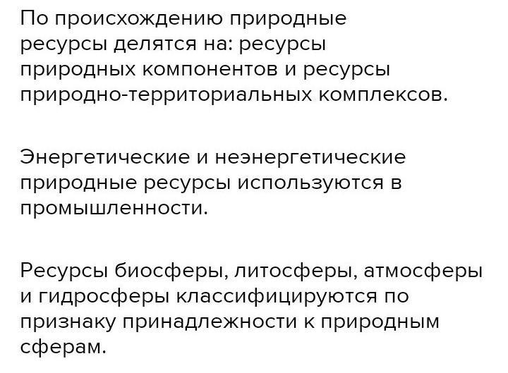 Классифицируйте природные ресурсы по возможности хозяйственного использования.