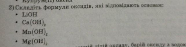 Ответ:LiOH--Li2O, Ca(OH)2--CaO, Mn(OH)2--MnO, Mg(OH)2--MgO