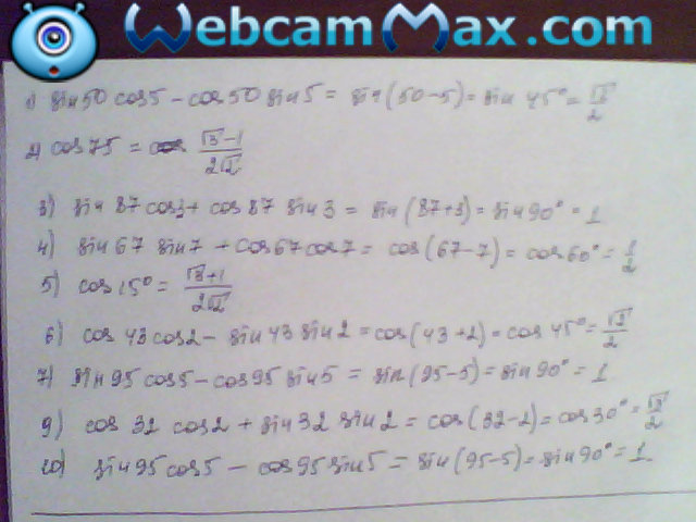 9) cos32° cos2°+ sin32° sin2°
