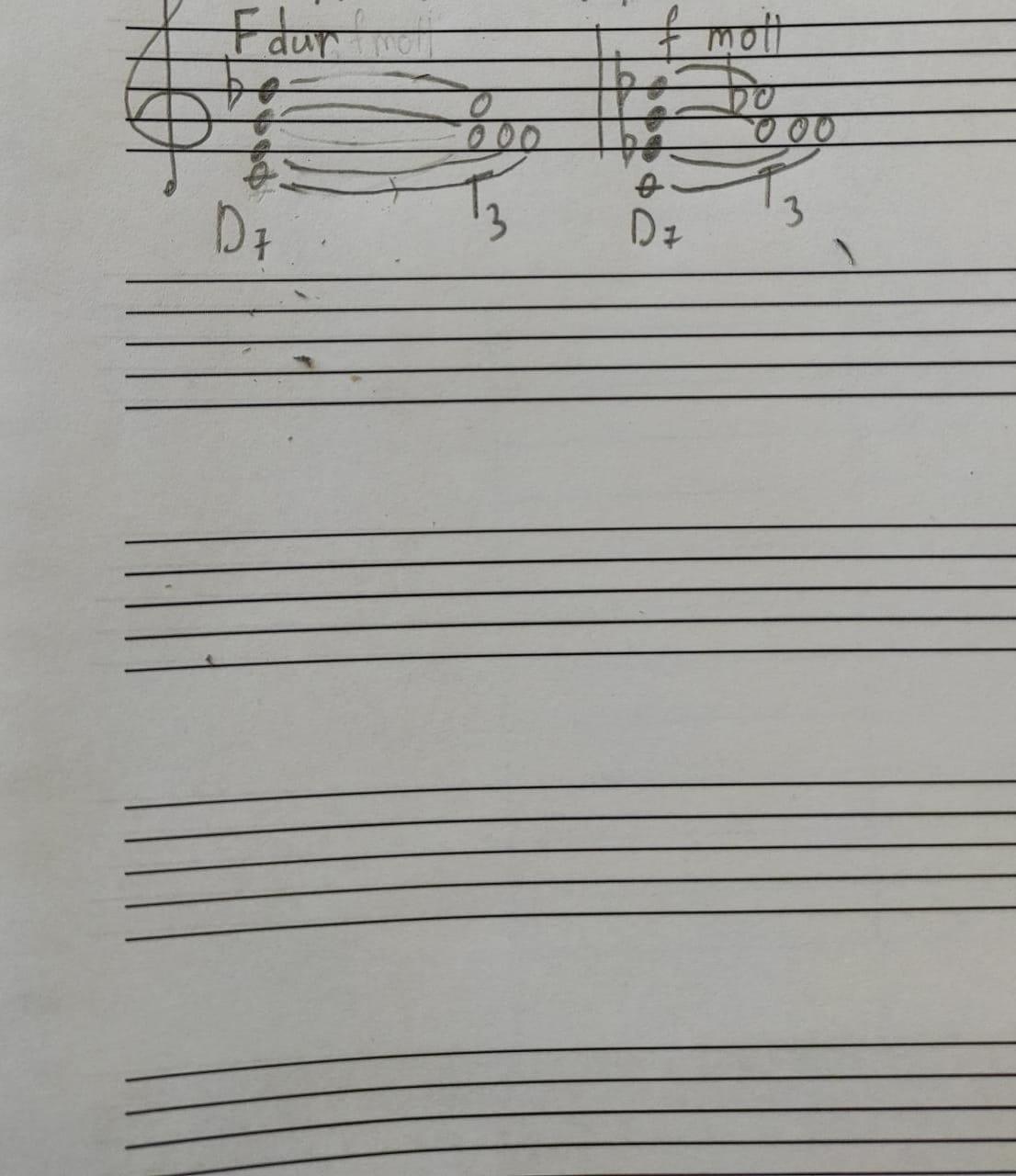 Нужно построить только д7 от белых клавиш, и разрешить одноимённый мажор и минор. Спасибо заранее)