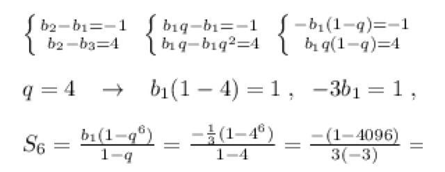 разность между вторым и первым членами геометрической прогрессии равна -1, а разность между вторым и третьим её членами равна 4. чему равно сумма первых шести членов прогрессии?