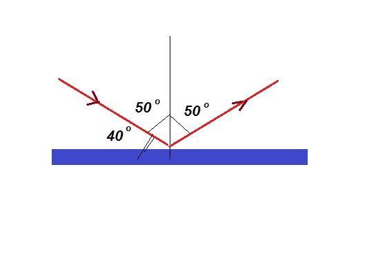 Лучи Солнца падают под углом 40 градусов к гладкой поверхности воды. Найти в градусах угол отражения.