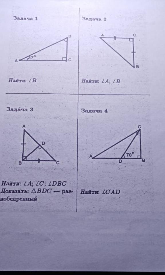 4. В ΔDCB ∠В = 90°, ∠ CDB = 70°, значит,