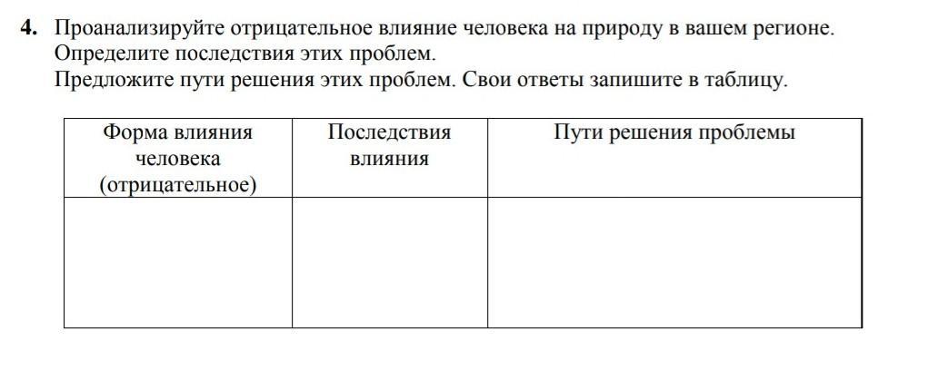 4. Проанализируйте отрицательное влияние человека на природу в вашем регионе.