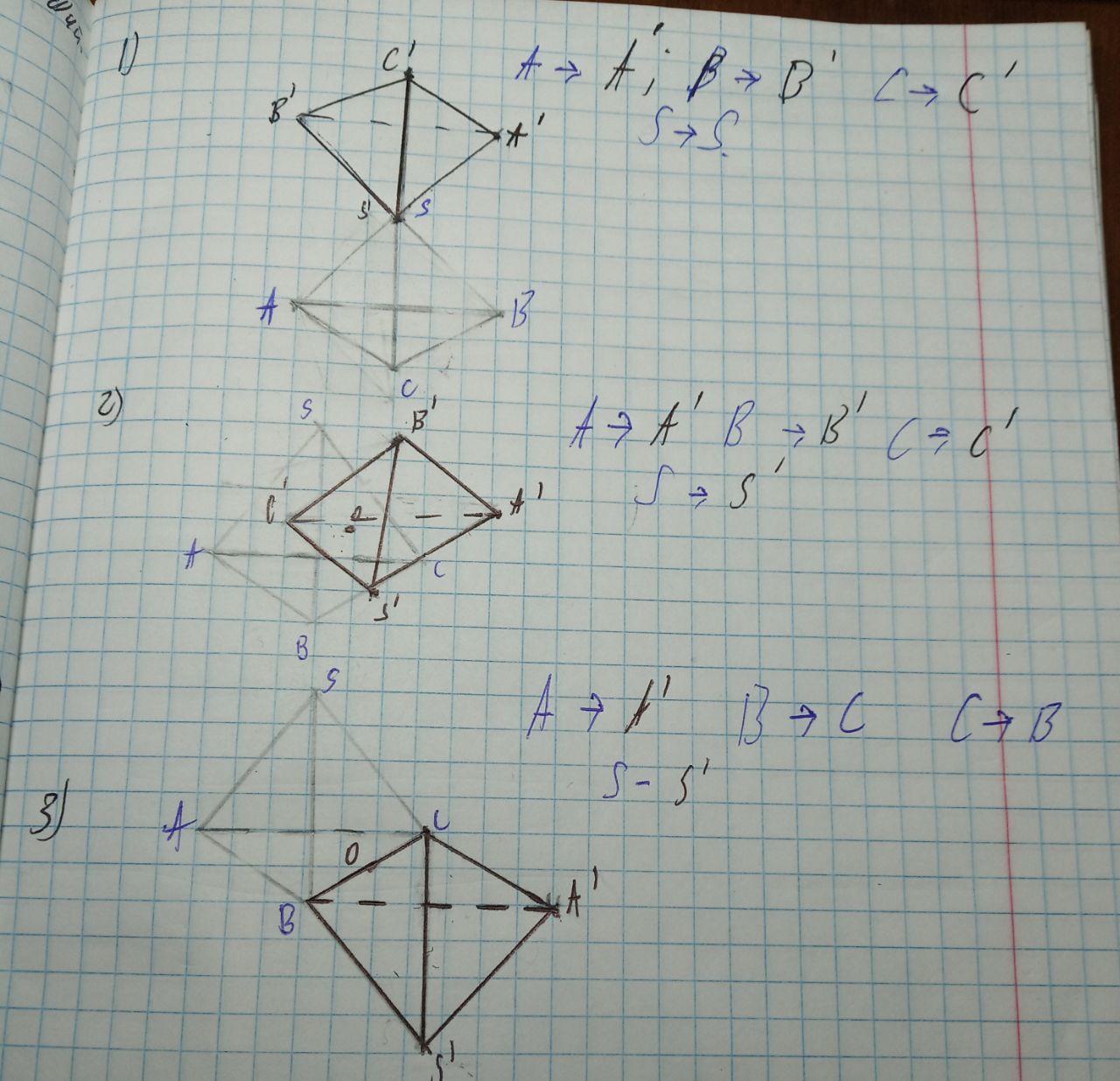 Ідея така: Нехай т.О- центр симетрії. Тоді щоб знайти точку, в яку переходить т.А, потрібно відкласти від т.О відрізок рівний АО у тому ж напрямку :)