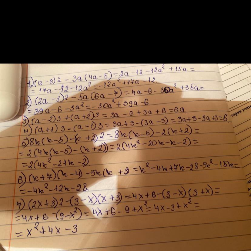 °6) (к + 7)(к - 4) - 5к(к + 3)