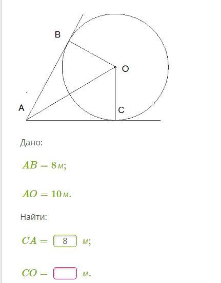 Так как AB=CA, то CA=8. По теореме Пифагора для ΔACO . Вот и все, что нужно записать.