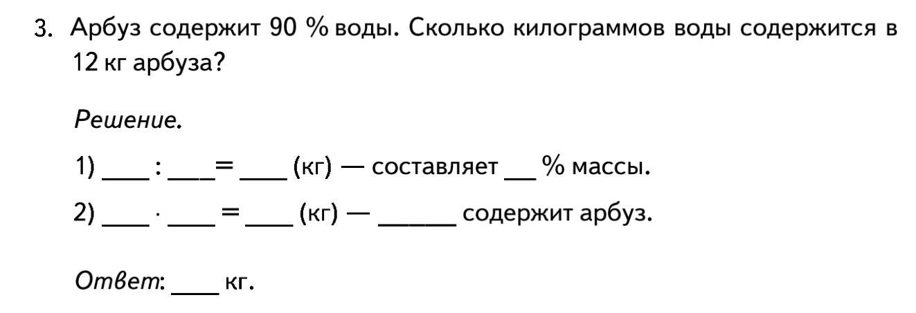 Арбуз содержит 90 % воды. Сколько килограммов воды содержится в