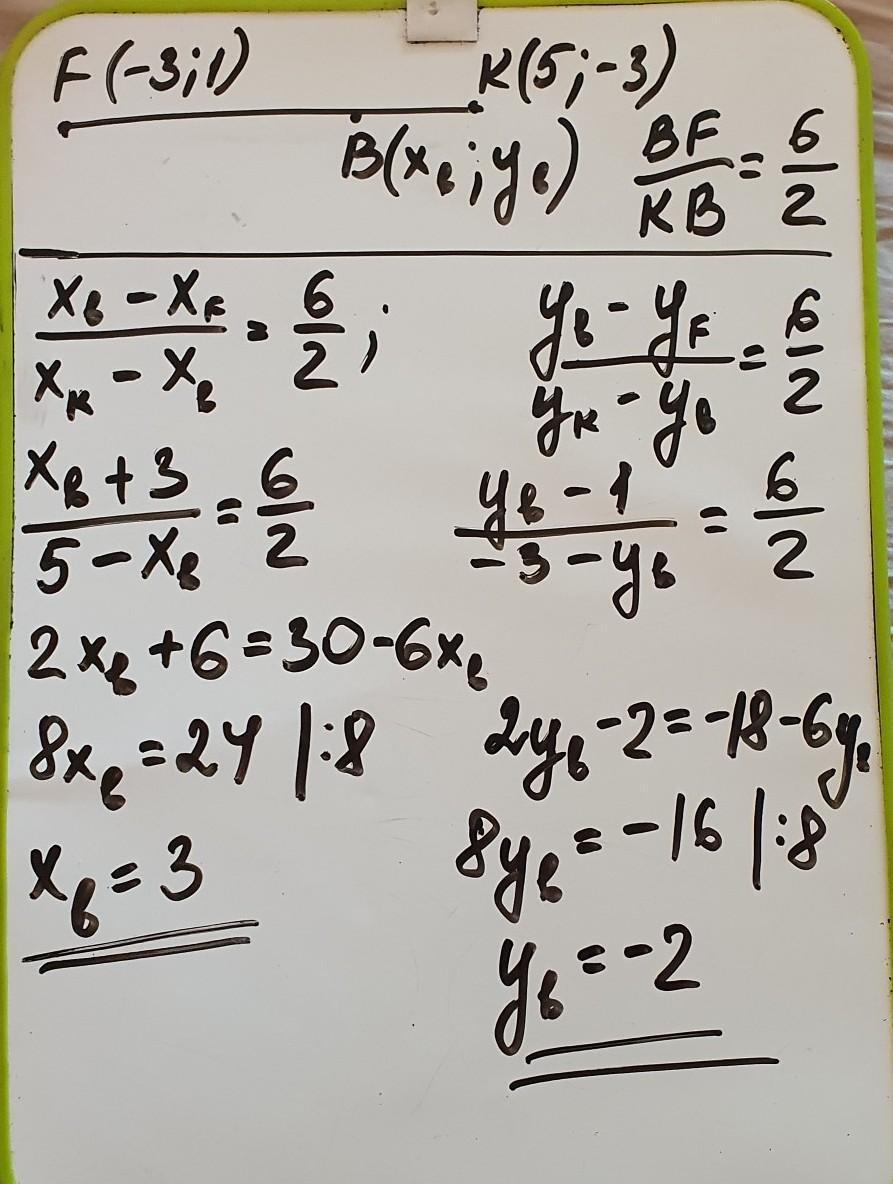 Точка B делит отрезок FКв отношении 6:2, начиная от точки F. Найдите координаты