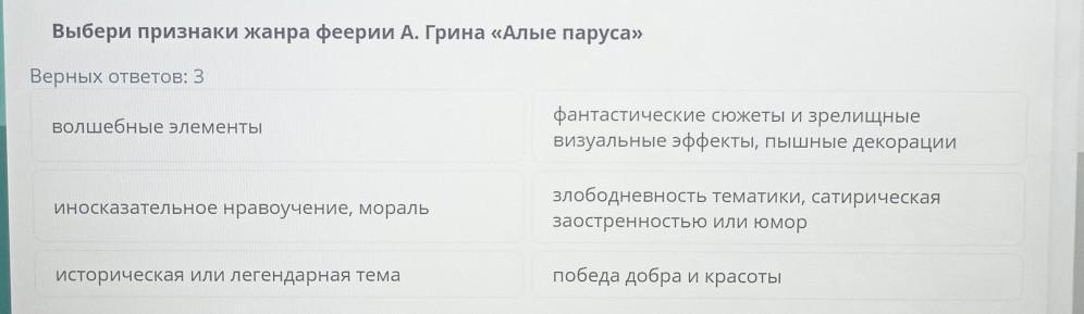 Выбери признаки жанра феерии А. Грина «Алые паруса»