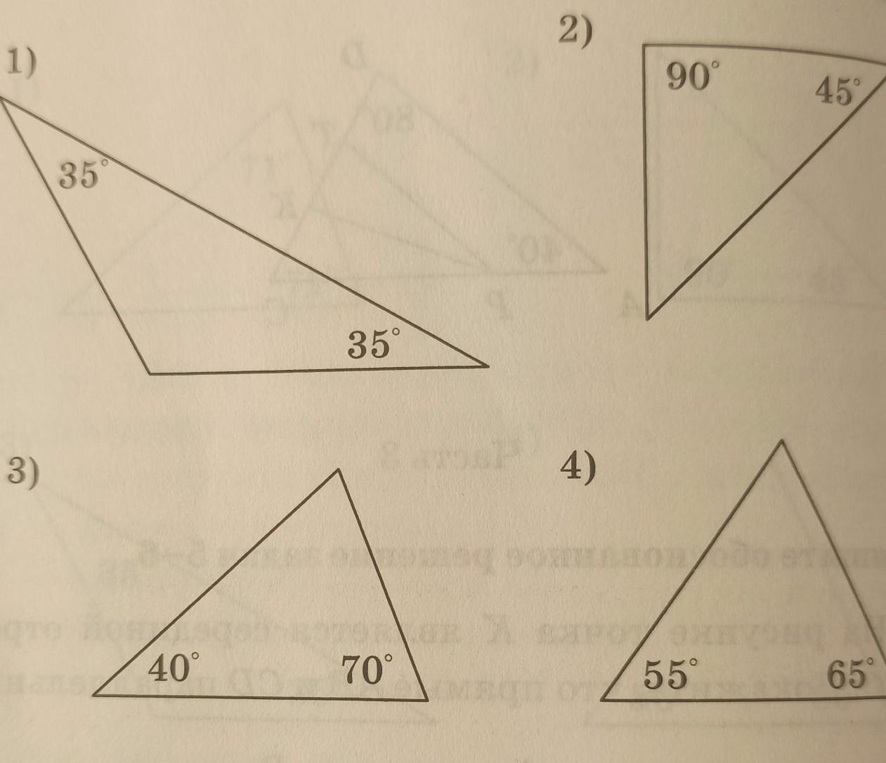 Используя данные ,приведенные на рисунках,укажите номера рисунков, на которых изображены равнобедренные треугольники