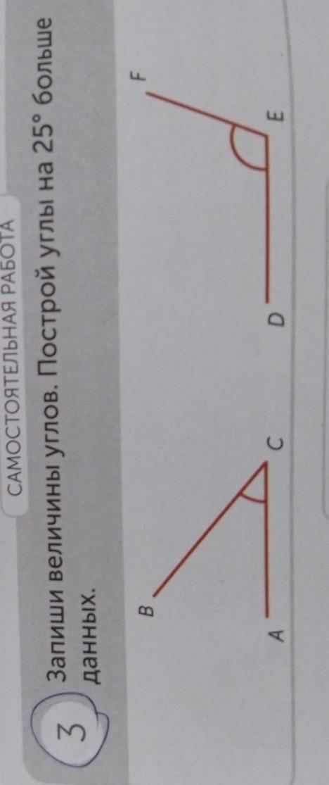 3. Запиши величины углов. Построй углы на 25° больше данных