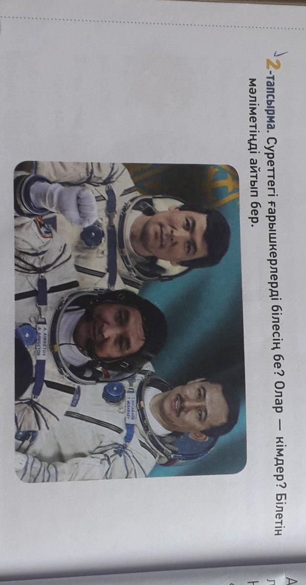 2-тапсырма. Суреттегі ғарышкерлерді білесің бе? Олар — кімдер? Білетін