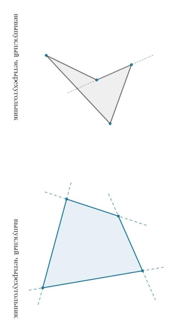 Четырехугольник называется выпуклым, если он находится в одной полуплоскости относительно прямой, содержащей любую его сторону.