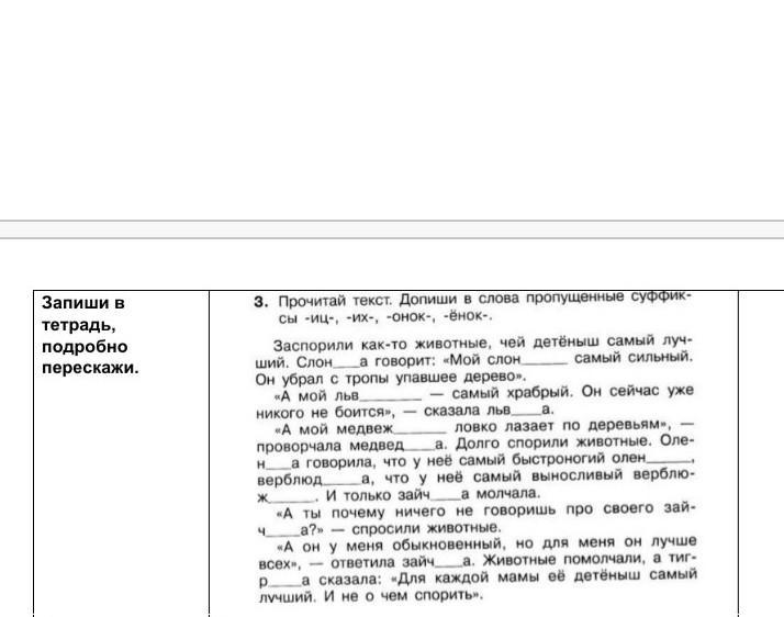 <<А мой медвежонок ловко лазит по деревьям>>,-- начала медведица. Долго спорили животные. Олениха говорила, что у неё самый быстроногий олененок, верблюдиха, что у неё самый выносливый верблюжонок. И только зайчиха молчала