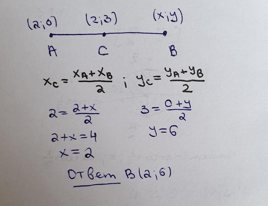 Точка C (2;3) является серединой отрезка AB найдите координаты точки B если A (2;0)