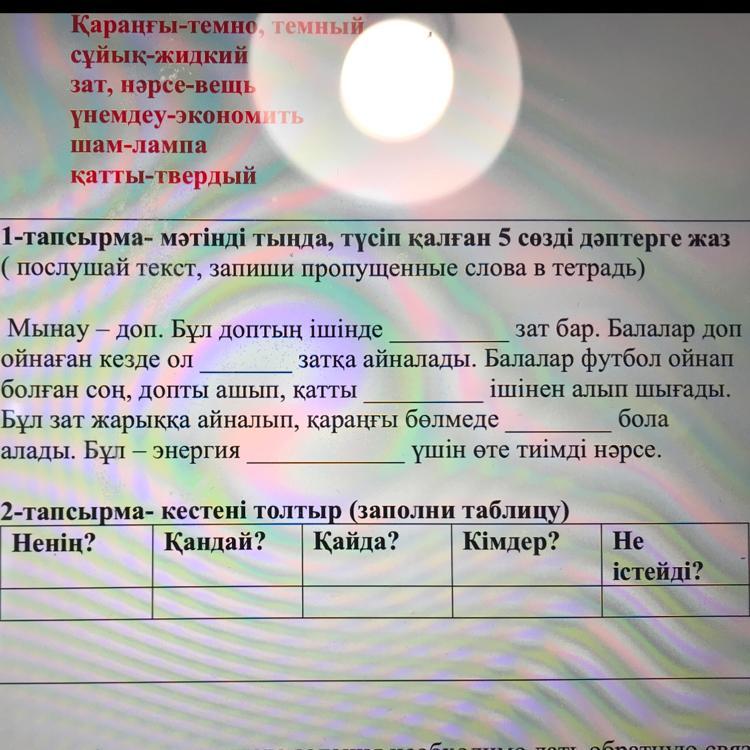 2-тапсырма- кестені толтыр (заполни таблицу)