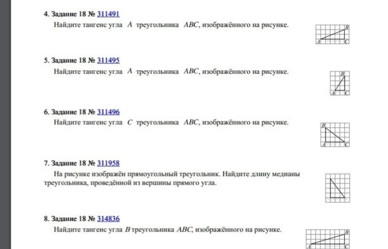 Тангенс угла в прямоугольном треугольнике — отношение противолежащего катета к прилежащему: