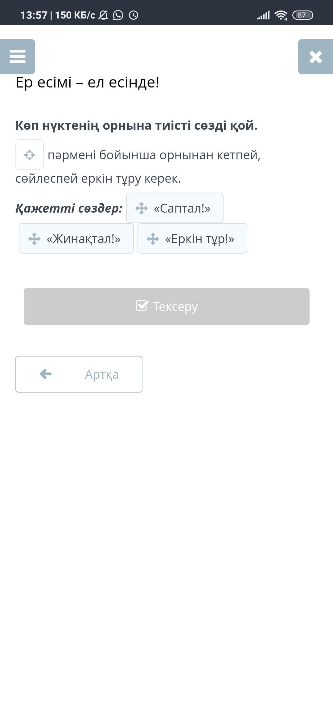 "Еркін тұр!" пәрмені бойынша орнынан кетпей,сөйлеспей еркін тұру керек.