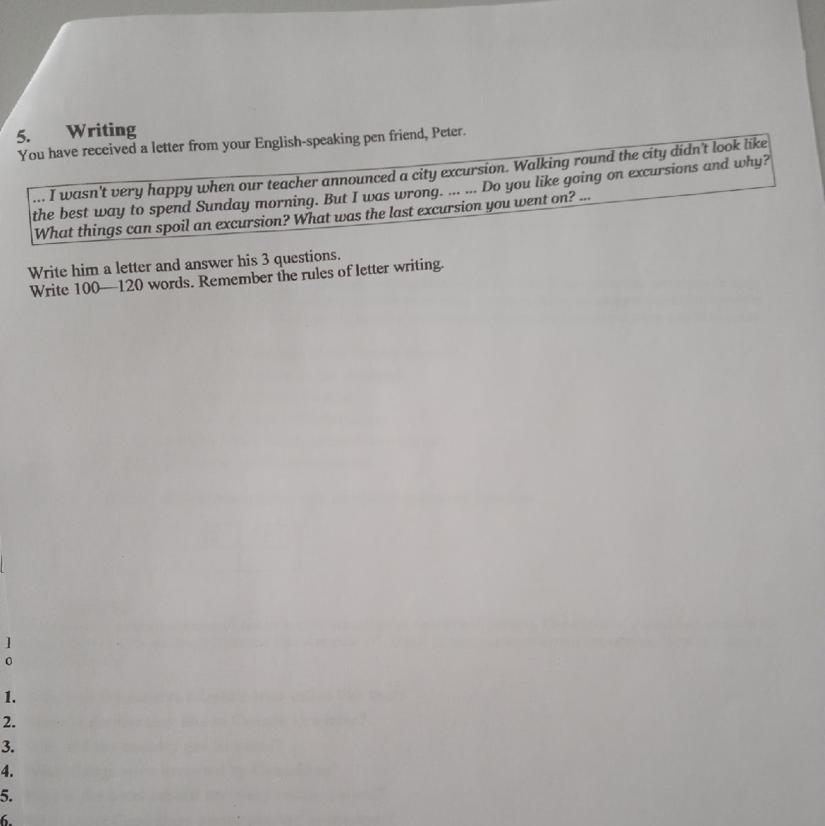 I am glad for your letter. I love going on excursions. I recently had an excursion to the zoo. We went with my family. it was cool there. The tour guide told us everything about animals in a very interesting way. Zebras, tigers and many others .. I liked the monkeys. We had a good time, I advise you to visit here too