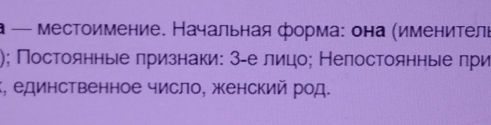 часть речи слово она вместе не не начальная форма она не ничего не подержанные свинка числа постоянно признаны 3 лицо не постоянный признаки единственный падежи имени сижу падеж женский род