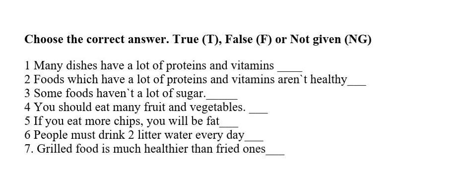 Choose the correct answer. True (T), False (F) or Not given (NG)