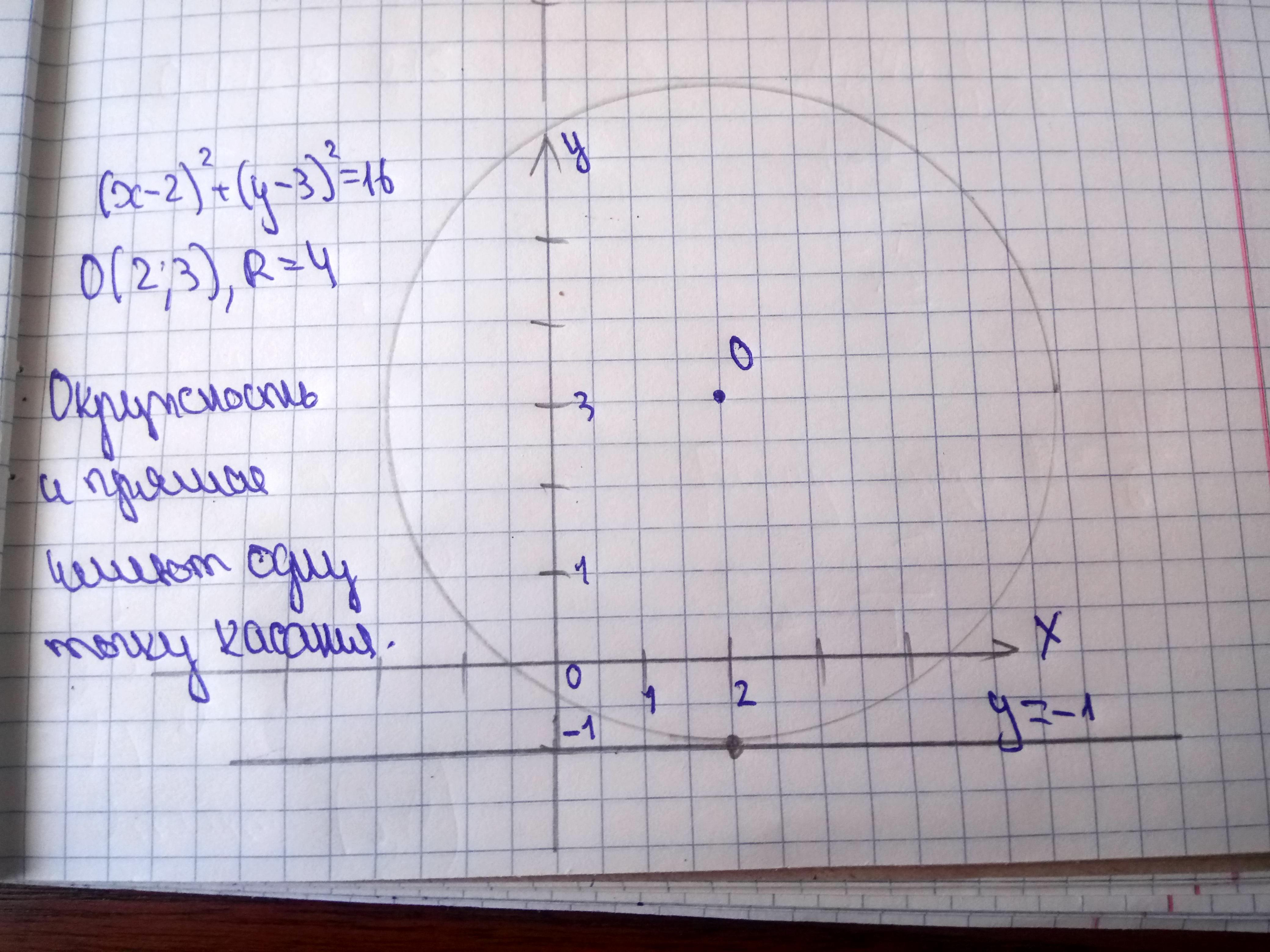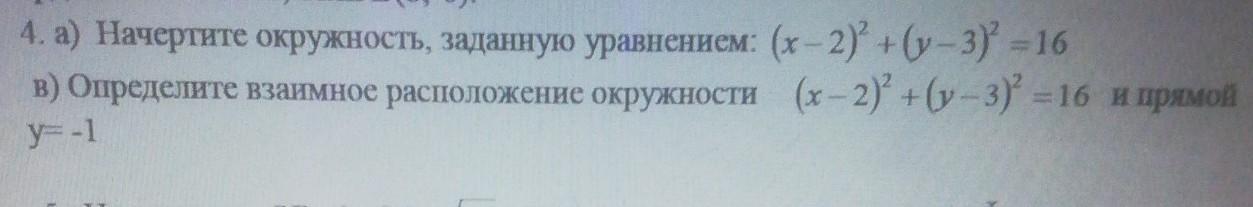 4. а) Начертите окружность, заданную уравнением: (х-2) + (-3) =16