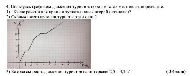 3) за время 2,5 по 3,5 ч прошли 2 км → скорость=2/1=2км/час