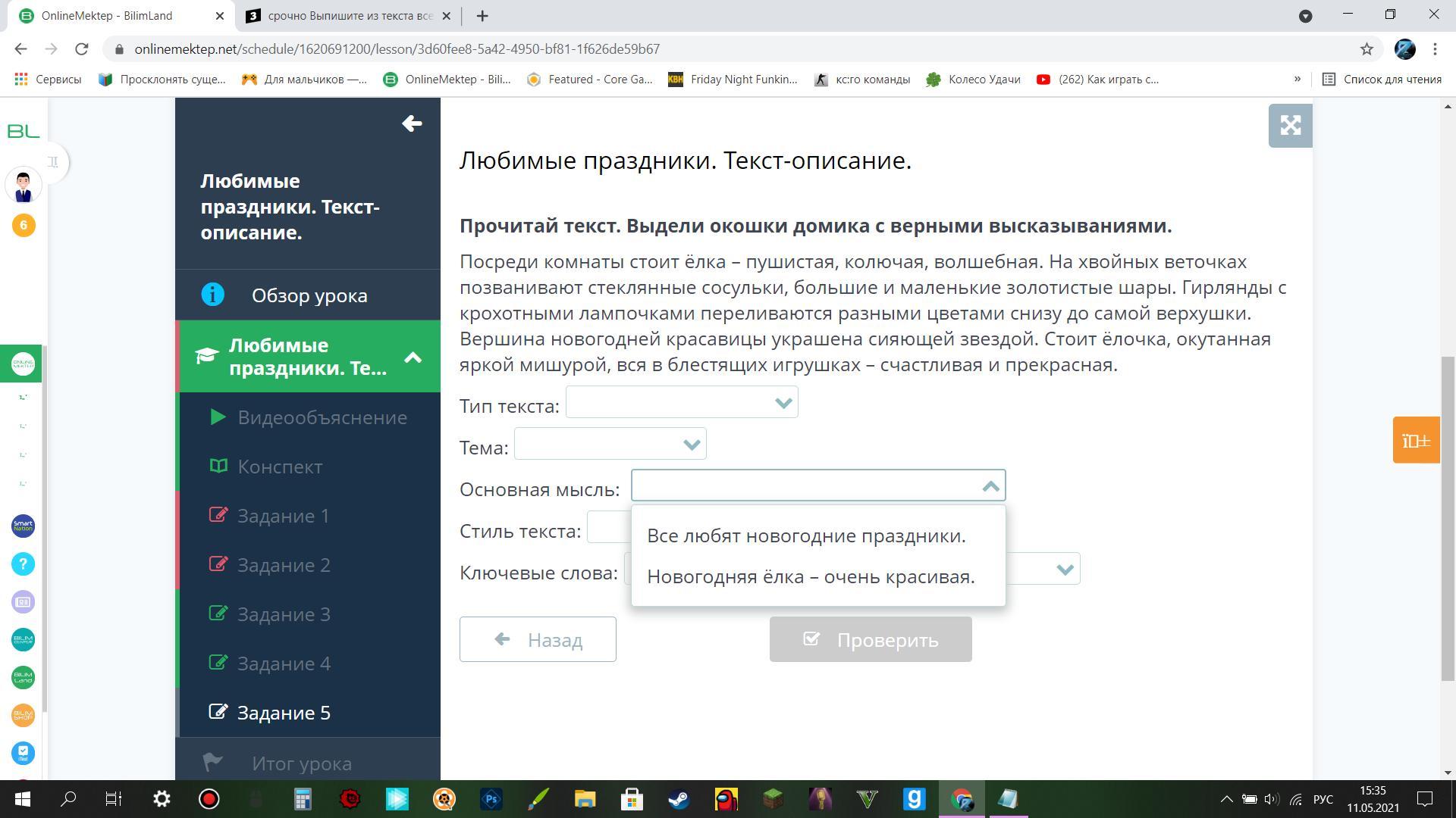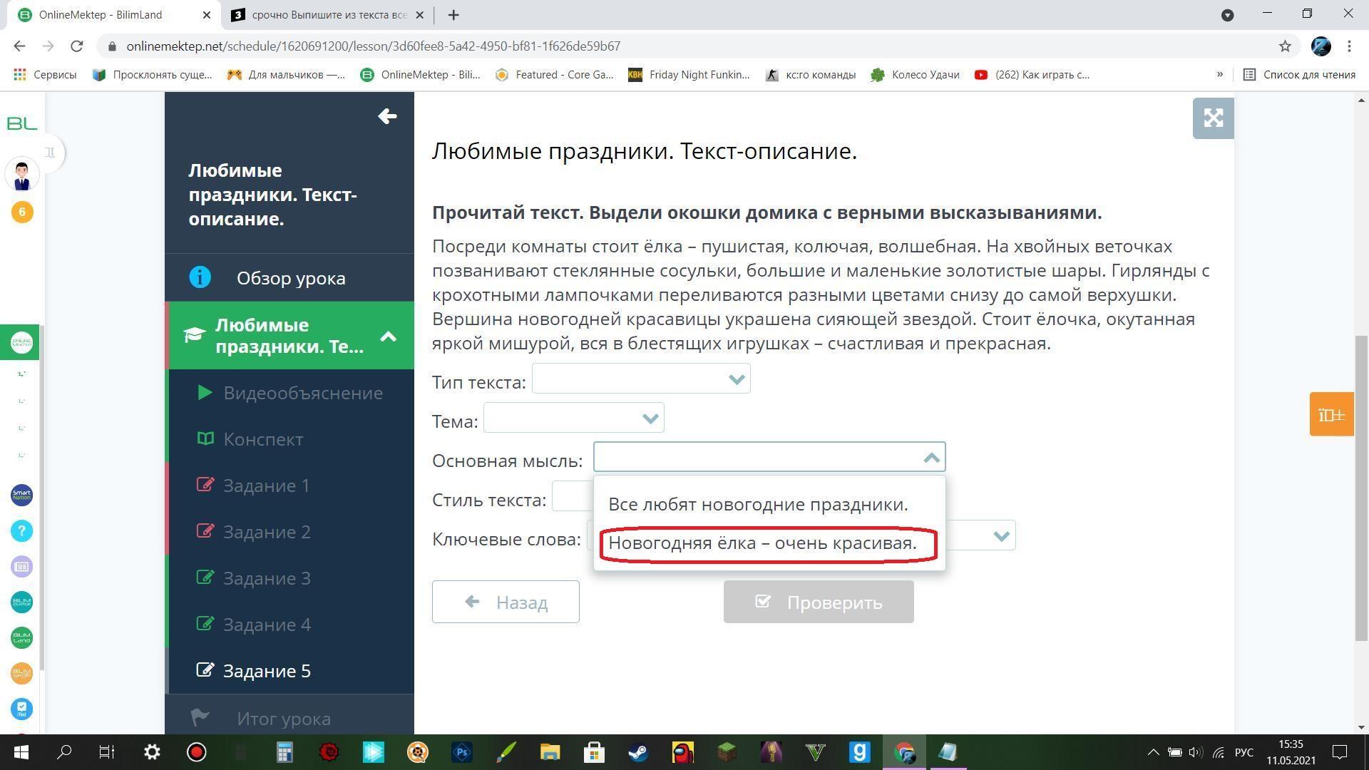 Прочитай текст. Выдели окошки домика с верными высказываниями.