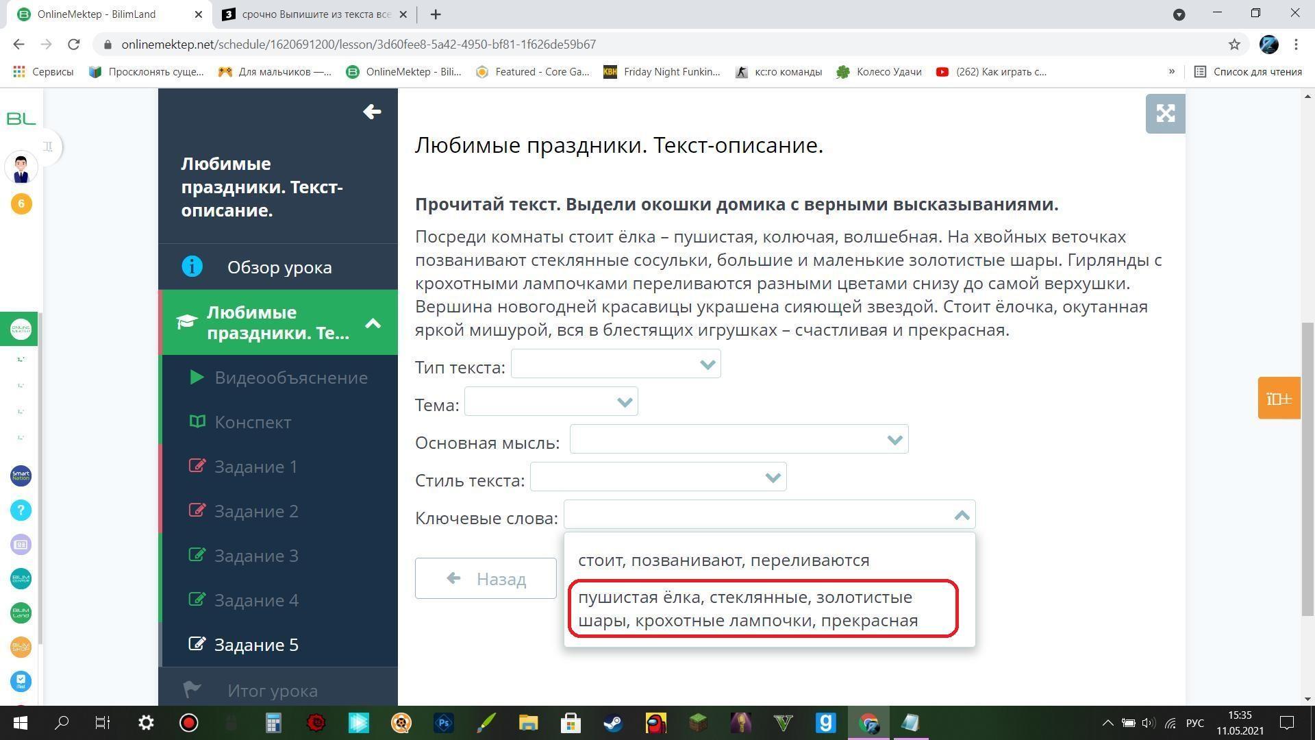 Посреди комнаты стоит ёлка – пушистая, колючая, волшебная. На хвойных веточках позванивают стеклянные сосульки, большие и маленькие золотистые шары. Гирлянды с крохотными лампочками переливаются разными цветами снизу до самой верхушки. Вершина новогодней красавицы украшена сияющей звездой. Стоит ёлочка, окутанная яркой мишурой, вся в блестящих игрушках – счастливая и прекрасная. ⊄20 баллов⊅