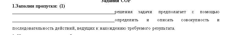 решения задачи предполагает с помощью __________________________________________определить и описать совокупность и последовательность действий, ведущих к нахождению требуемого результата
