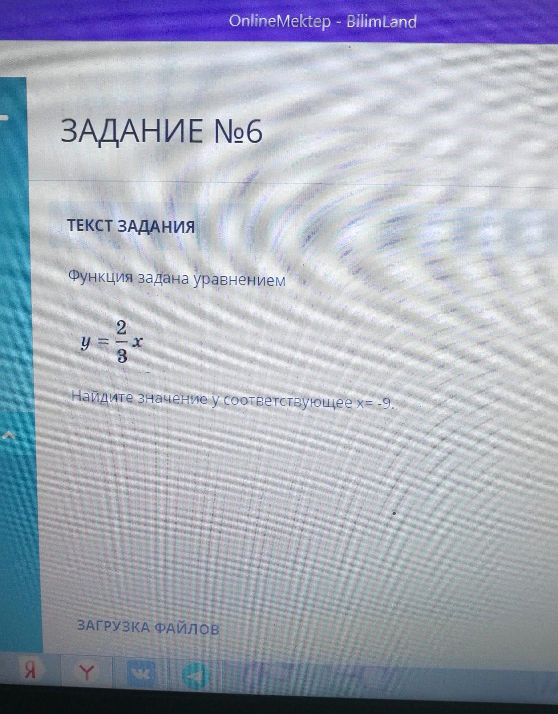 y = 2/3 * x ; x = - 9